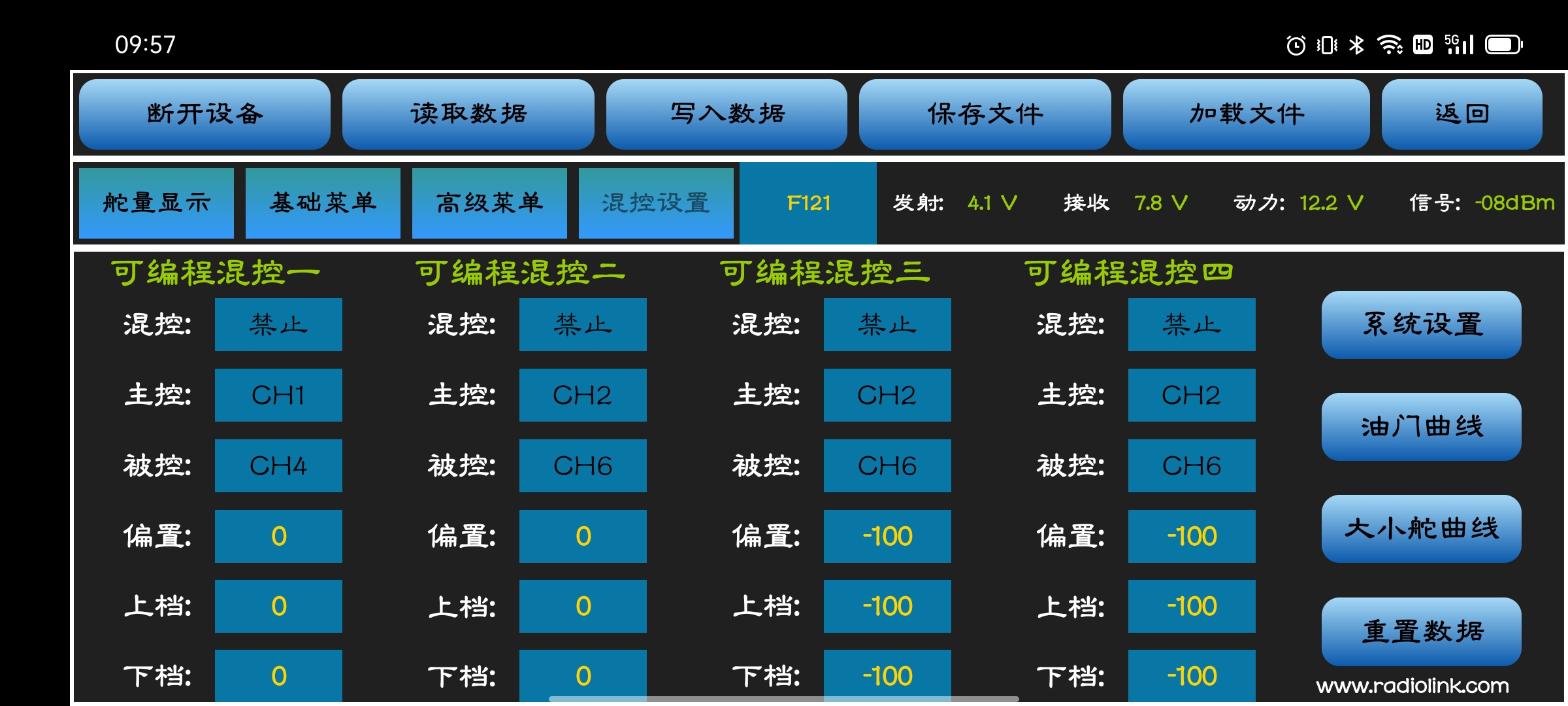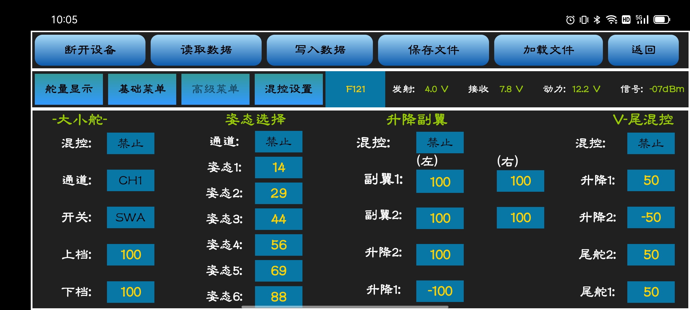 可在手机APP上实时查看遥控器电压,动力电池电压和RSSI值信息
