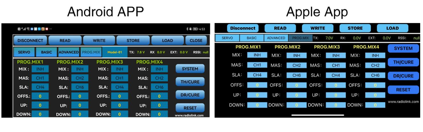 Programmable mix control is custom mix settings, which can independently select the master channel and slave channel. It is often used to compensate for the attitude changes of the aircraft.