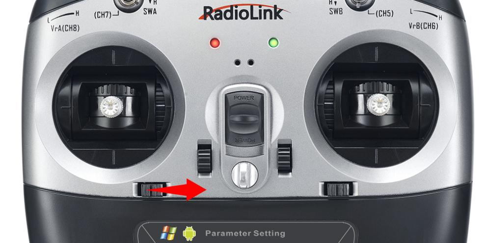 1) When the transmitter is power-off, toggle both sticks at the central point. Press rudder trimmer left and turn on transmitter at the same time, red and green LED will start flashing and the T8FB is ready to be calibrated.