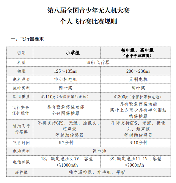 适用项目:小学组个人飞行赛