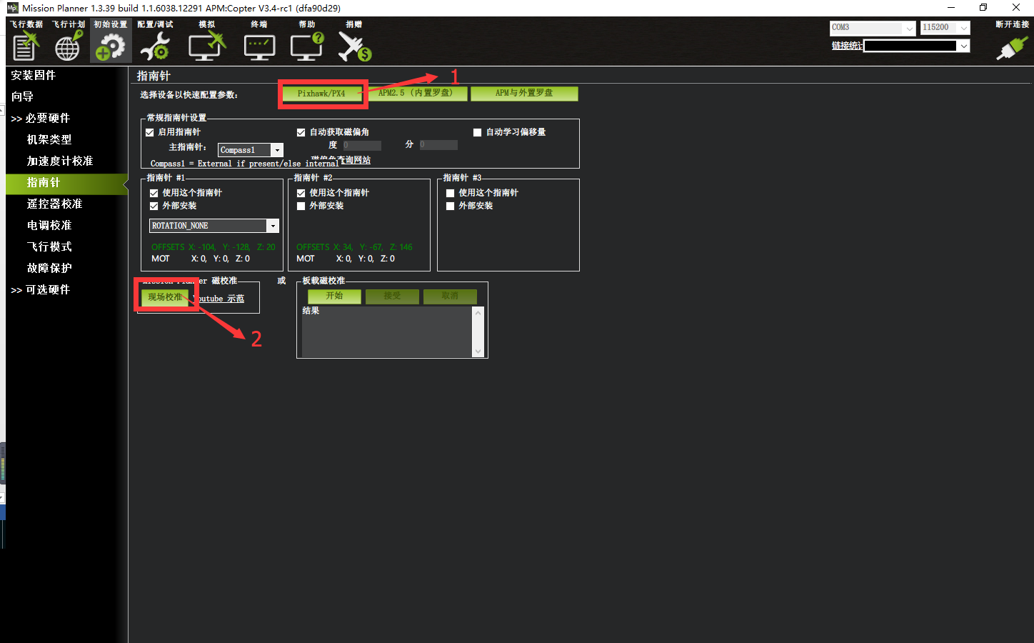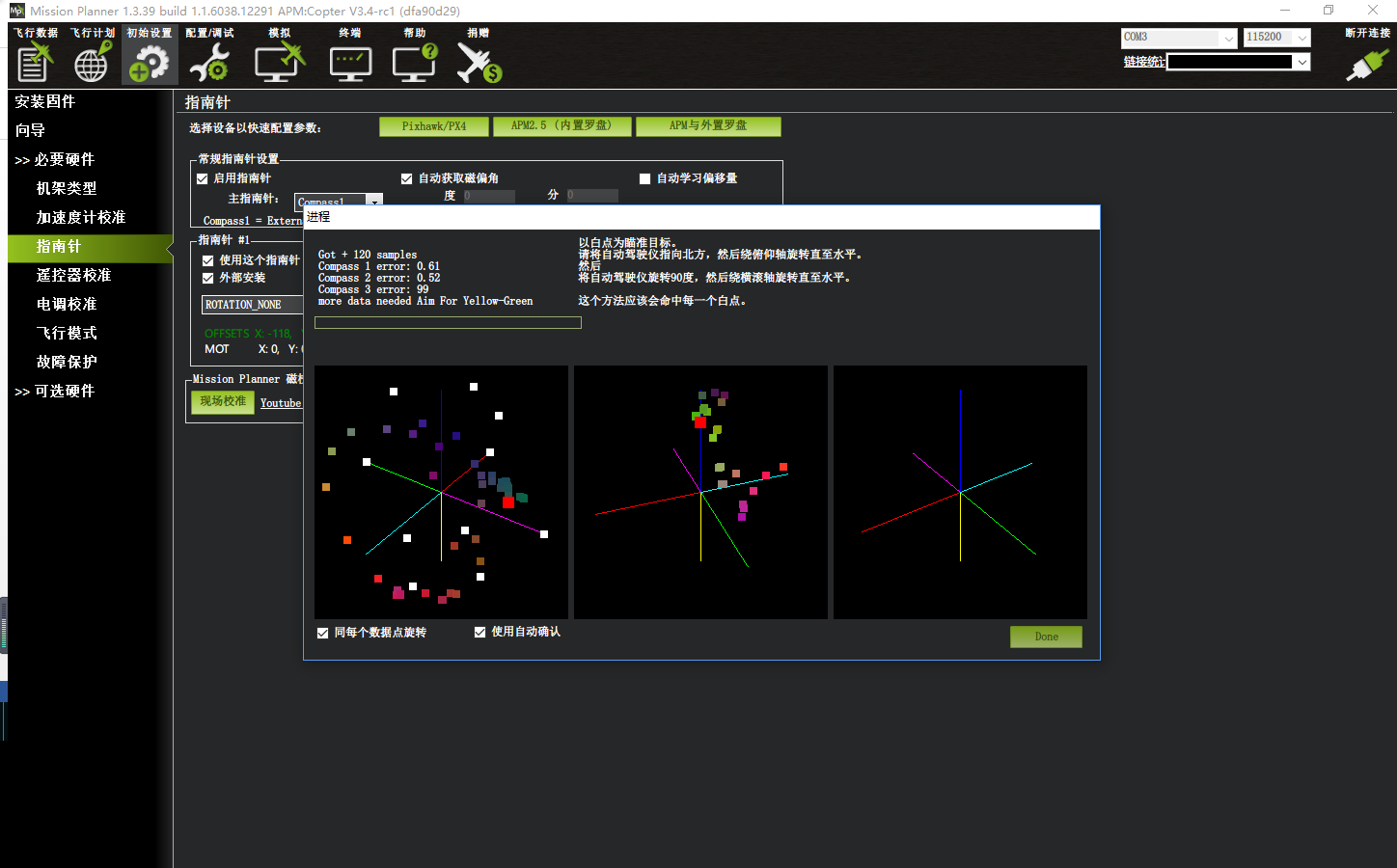 校准罗盘使用(使用Mini Pix/APM固件,mission planner地面站)
